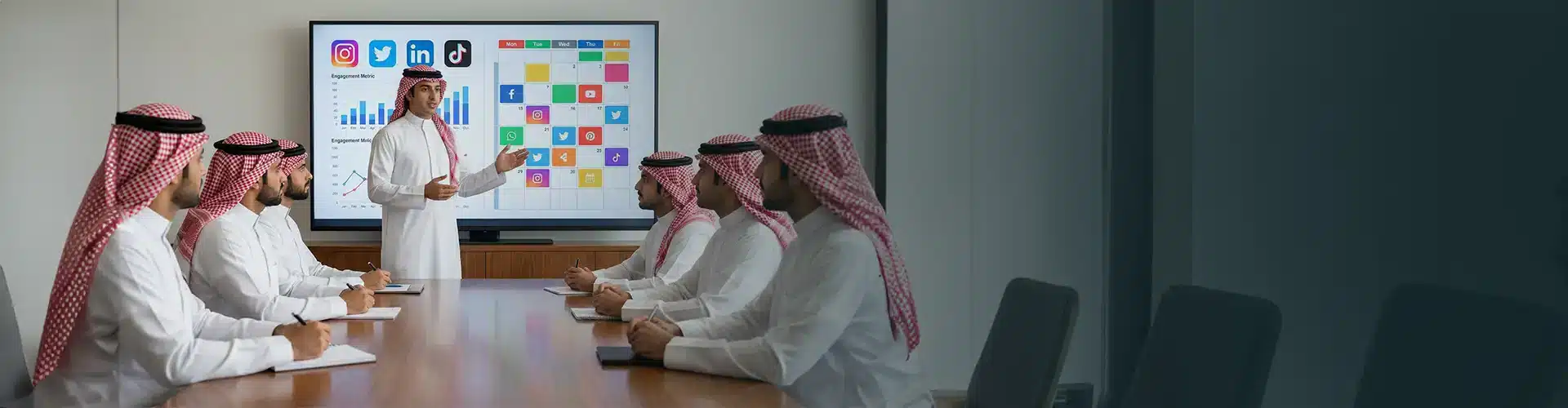 نضع تقويماً زمنياً (Content Calendar) يتضمن مواعيد النشر المثالية بناءً على أوقات ذروة نشاط جمهورك في المملكة.
